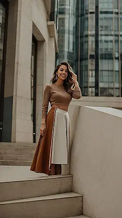 She’s totally giving off “confident and ready to take on the day” vibes. And who doesn’t love a little confidence boost from a great outfit? This skirt and top combo is a surefire way to feel like a million bucks, even if you’re just running errands or grabbing coffee. It’s all about feeling good in your own skin, right? So go ahead, embrace your inner fashionista and try out a skirt and top combo – you might just be surprised how awesome you feel!
