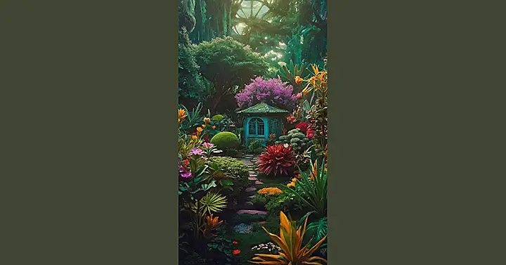 This picture looks like a secret garden that’s been sprinkled with fairy dust! It’s so colorful and magical. You can almost hear the wind rustling through the leaves and smell the sweet scent of flowers. It reminds me of those awesome fantasy books where the hero stumbles upon a hidden world full of wonder and maybe even a talking animal or two. I’d love to wander through this garden and see what treasures I can find! It’s like stepping into a dream!