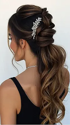 This hairstyle is like a fairytale come true! Imagine you’re a bridesmaid, and your best friend is getting married. You want to look your best, but you also want to be comfortable and have your hair out of your face. This hairstyle does just that! It’s got the perfect blend of elegance and practicality. Plus, it’s super easy to replicate, even if you’re not a hair pro. Just grab your curling iron, a pretty hair clip, and get ready to shine!