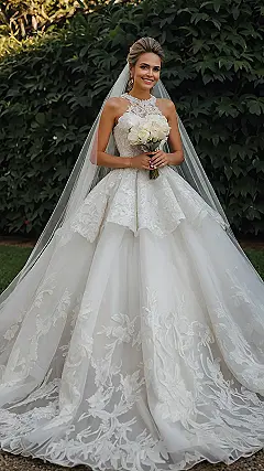 Imagine ditching the stuffy ballroom and saying “I do” in a field of wildflowers, with a dress that’s as free-spirited as you are! This Boho chic gown is all about embracing your inner earth goddess. It’s got that fancy lace thing going on, but it’s also chill enough to dance barefoot in the grass without feeling like you’re going to trip over a mile of tulle. Basically, it’s like a hug from nature, but in dress form.