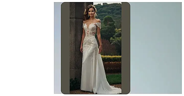 This dress is giving major princess-meets-free-spirit vibes! Imagine ditching the stuffy ballroom and getting married barefoot in a field of wildflowers. That’s what this “boho chic” style is all about – a little bit fancy, a little bit wild, and totally you. Who needs a tiara when you’ve got a dress that screams “I’m getting married, and I’m doing it my way!”