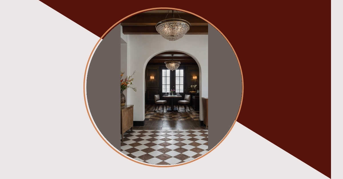 Through that cool archway, you catch a glimpse of another floor, like the checkerboard’s slightly mysterious cousin. It’s got that old-school, sophisticated vibe, almost as if it’s witnessed a million epic conversations or, you know, a few accidental crumb drops (hopefully not both at once!). Trying to sneak a snack in there would be impossible; every munch would totally echo under those sparkling chandeliers! This whole scene just proves that whether your tiles are neatly checkered or have a bit more textured character, checkerboard style floors are absolutely sticking around to make a statement way into 2026, making any space look epic enough for a grand entrance.