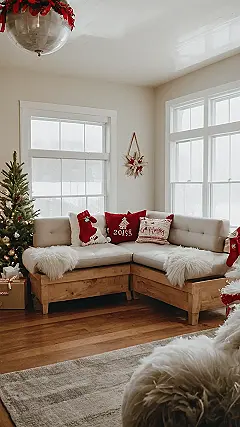 This room is seriously decked out for the holidays! Imagine snuggling up on that comfy-looking sectional, surrounded by fluffy throws and festive pillows. It’s the perfect spot to sip hot cocoa and watch cheesy Christmas movies. The giant ornament hanging from the ceiling is a total showstopper—it’s like a giant, sparkly snow globe! This is definitely cool room decor that screams “Christmas spirit” without being overly fussy.