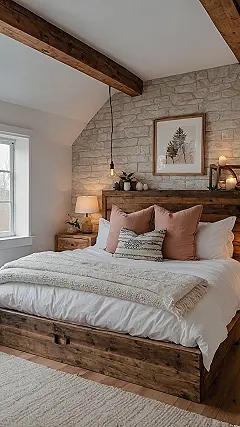 Seriously, whoever designed this room was a genius of snugness. That cool stone wall makes you feel like you’re in a secret cabin hideout, and the big wooden beams overhead just scream “relax already!” It’s the perfect spot to curl up with a good book, binge-watch your favorite show, or just stare at the ceiling beams and contemplate the meaning of optimal comfort. Plus, that soft lighting makes everything feel extra warm, like the room is giving you a gentle hug.