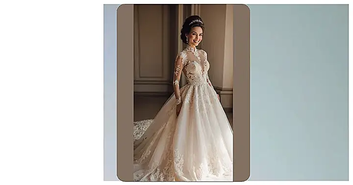 Talk about making an entrance! This wedding dress is practically screaming “future queen” with its incredible volume and delicate lace work. Look at that dazzling smile on the model – you just know she feels like she stepped right out of a fairytale, ready to float down the aisle without a single worry. With a skirt this grand, you could probably hide a small orchestra underneath or at least enough snacks to get through the entire reception. This gown is all about turning heads and making everyone say “wow!”