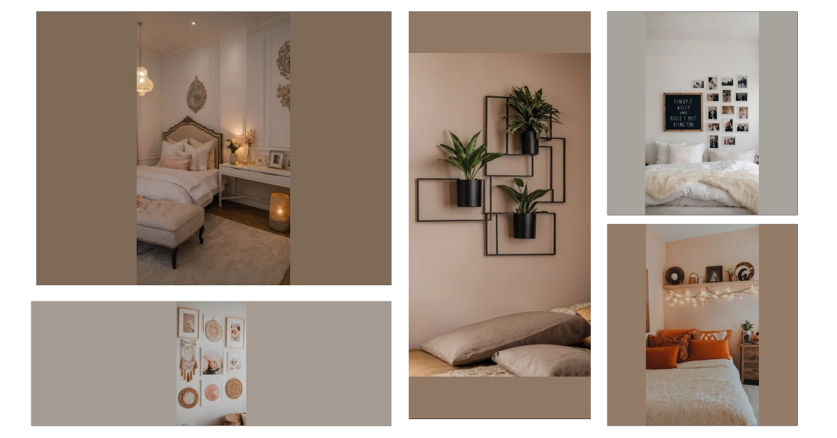 Take a look at this bedroom wall decor! It’s not just a wall; it’s practically a whole art exhibit right above the bed. Whoever curated this awesome gallery wall must have some serious framing skills, or maybe they just decided every cool picture they’ve ever owned needed a spot. It’s like a personal museum where the only rule is “more is more”! You’d never run out of interesting things to stare at while procrastinating sleep, and it definitely beats a blank wall any day.