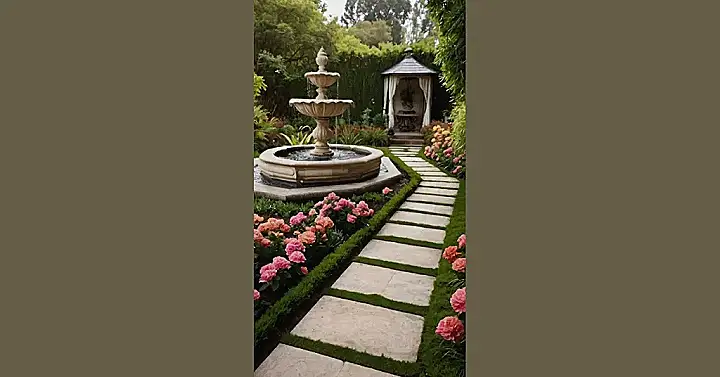 This garden is like something out of a dream! Imagine walking along the stone path, feeling the soft grass between your toes, and hearing the gentle splash of the fountain. It’s like you’re in a secret garden, just waiting for a magical creature to pop out from behind the bushes! The flowers are blooming in all their glory, and the whole place just smells amazing. It’s a perfect spot to relax and let your imagination run wild.