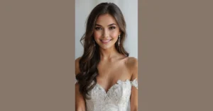 That dazzling smile and stunning blue dress perfectly complete the picture, making her look totally ready to rock a wedding. Whether she’s the bride herself, a super glamorous bridesmaid, or just the best-dressed guest, her hair is definitely getting an award for “Most Likely to Steal the Show (After the Actual Couple, Of Course).” With those sparkling earrings adding extra glam, she’s ready to celebrate, take a million selfies, and probably dodge rogue champagne corks all night while still looking absolutely flawless. It just goes to show, brunettes know how to bring the wow factor to any wedding!