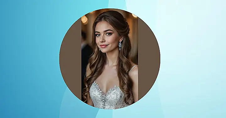 That dazzling smile and stunning blue dress perfectly complete the picture, making her look totally ready to rock a wedding. Whether she’s the bride herself, a super glamorous bridesmaid, or just the best-dressed guest, her hair is definitely getting an award for “Most Likely to Steal the Show (After the Actual Couple, Of Course).” With those sparkling earrings adding extra glam, she’s ready to celebrate, take a million selfies, and probably dodge rogue champagne corks all night while still looking absolutely flawless. It just goes to show, brunettes know how to bring the wow factor to any wedding!
