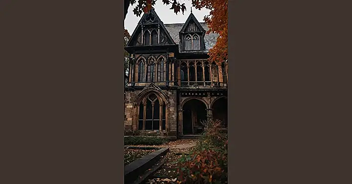 This house is giving serious “haunted mansion” vibes! It’s a great example of gothic architecture, which is a style of building that was popular in the Middle Ages. Look at those pointed arches and those tall, narrow windows! They make the house look really mysterious and a little bit spooky, don’t they? You can almost imagine a vampire lurking in the shadows, or a ghost floating down the stairs.