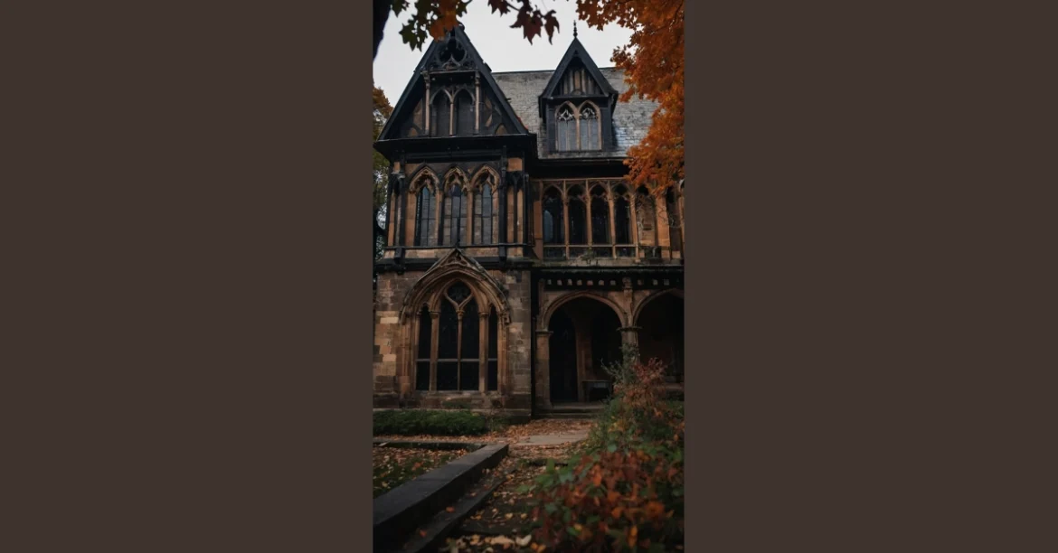 This picture shows a building that looks like it’s straight out of a fairytale. It’s got those tall, pointed arches and windows that are super common in what’s called Gothic architecture. It’s kinda like a castle, but way more fancy and maybe a little less scary. The stone walls are old and weathered, and you can tell they’ve seen a lot of history. And what’s really cool is that this spooky-looking castle is surrounded by beautiful fall colors!