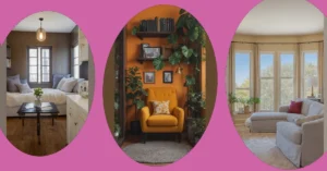 What’s especially cool is how they’ve used vertical space. Shelves are your best friend in a small room, seriously! These ones are packed with greenery and cool stuff, drawing your eye up and making the area feel taller. It’s proof that you don’t need a mansion to have a stylish and relaxing space. Even a tiny corner can become your personal happy place.