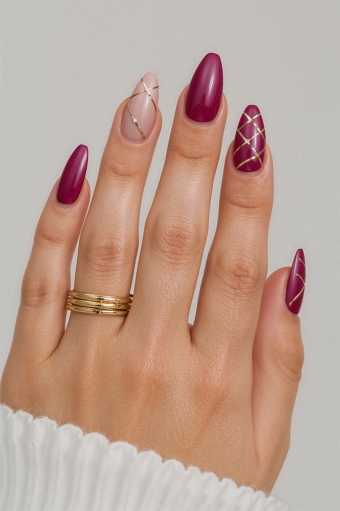 From subtle hints of metallic to full-blown, opulent statements, magenta and gold almond nails offer an incredible range of possibilities. Whether you’re dreaming of a decadent winter manicure or a fresh spring bloom, this trend seamlessly adapts to every season and mood.