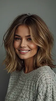 This hairstyle is totally party-ready! Imagine rocking this gorgeous, medium-layered look at your next school dance or celebration. It’s like the perfect blend of effortless cool and wow-factor glam. Those soft waves and highlights are seriously mesmerizing—they’ll make everyone do a double-take! You won’t need a tiara, this hair is the ultimate accessory.