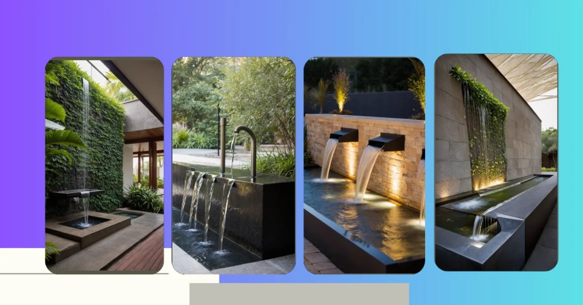 Walking into this yard must feel like you just stepped into a high-budget movie set where everything is perfectly lit and water is just casually cascading down cool stone walls. We’re talking about outdoor wall fountains that are basically showing off, turning plain old concrete into a shimmering, serene spectacle. It’s like these walls decided they didn’t want to be boring anymore and are now throwing a never-ending water party, complete with fancy lighting.