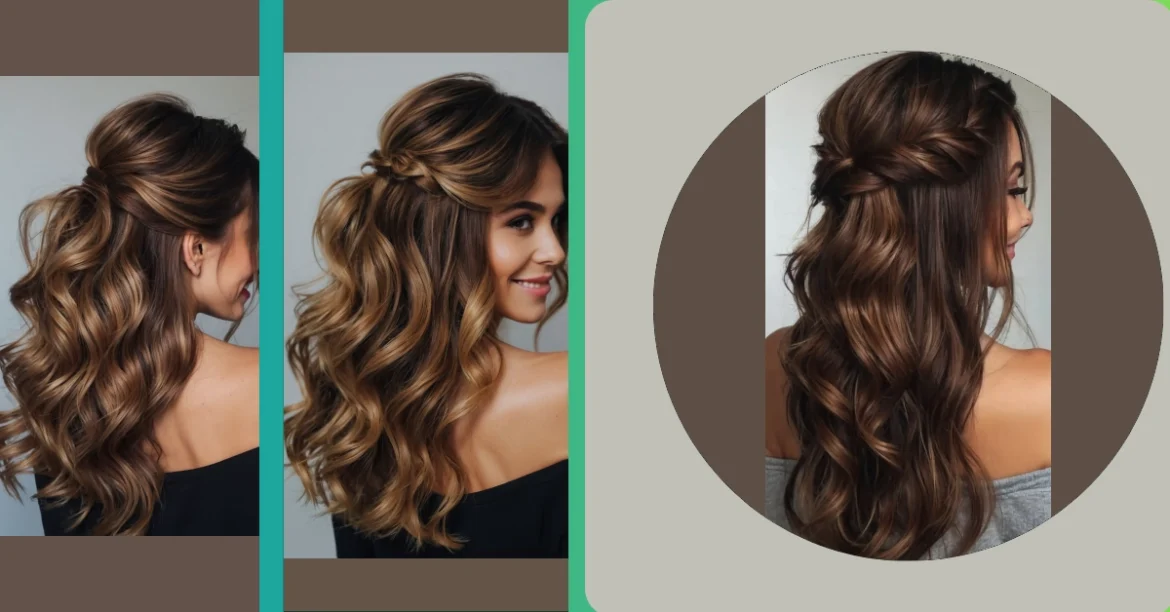 This hairstyle is like a magic trick for your hair! It’s a half-up, half-down style that’s super easy to do, but looks totally fancy. Imagine your hair is like a mermaid’s tail, and you’re taking a little bit of the top and tying it up to make it look even more beautiful. It’s perfect for a party or just a casual day out.