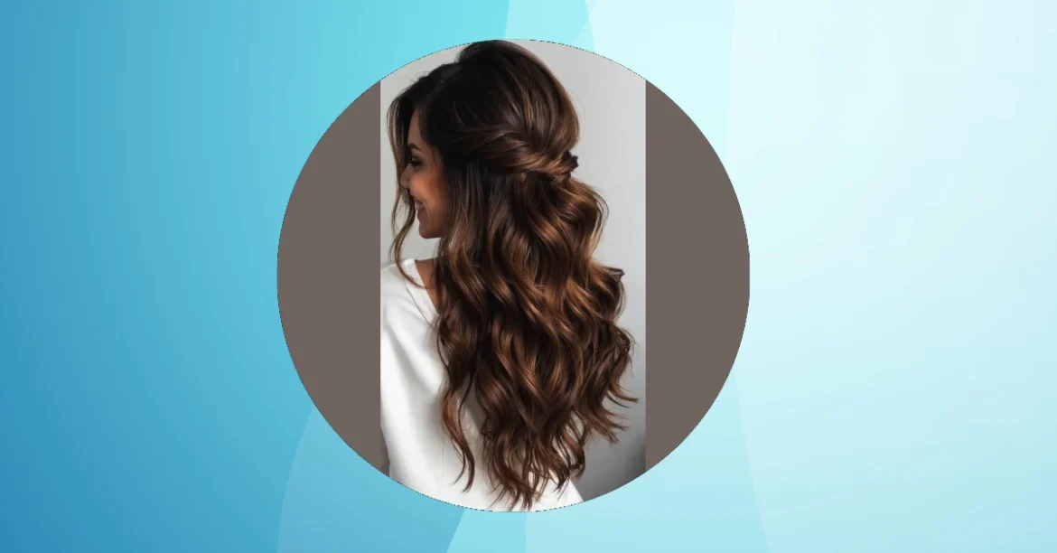 This hairstyle is like a magic trick for your hair! It’s a half-up, half-down style that’s super easy to do, but looks totally fancy. Imagine your hair is like a mermaid’s tail, and you’re taking a little bit of the top and tying it up to make it look even more beautiful. It’s perfect for a party or just a casual day out.