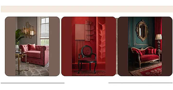 This isn’t your grandma’s red room! Forget dusty velvet and stuffy furniture; this picture shows a seriously stylish spot to relax. That gorgeous rosy-red couch is like a hug you can sit on, and those gold accents are super fancy—like something you’d see in a magazine. Imagine curling up there with a good book, the candlelight casting a warm glow. It’s the perfect combination of comfortable and chic, proving that red can be totally modern and sophisticated.