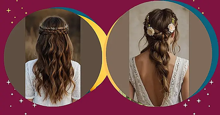 Hey there, future fashionistas! Check out this gorgeous hairstyle – it’s like a total upgrade on classic hippie vibes. Forget the crazy, messy hair of the 60s and 70s (unless that’s your jam!). This look takes the long, wavy hair that was super popular back then and adds a touch of elegance. That braided crown? It’s like a flower crown, but way more sophisticated. Imagine rocking this at a summer festival or even a fancy wedding. It’s a perfect mix of relaxed and refined – kind of like having your cake and eating it too!