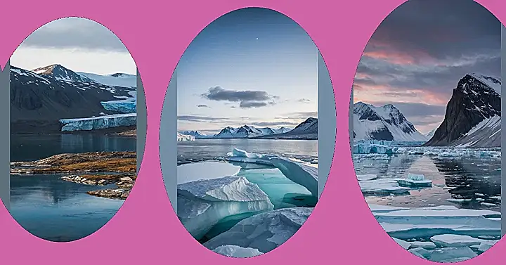 And just peek up at that sky! It’s showing off with layers of soft pink, orange, and purple painted across the clouds, making the cold mountains in the back look extra majestic. The way the light hits the water and the icebergs is just magical, like the whole world is sparkling. It feels super quiet and peaceful here, like the world is taking a deep breath. It’s definitely a beautiful arctic landscape that makes you appreciate how wild and stunning our planet can be, even if you need a parka just to look at the photo.