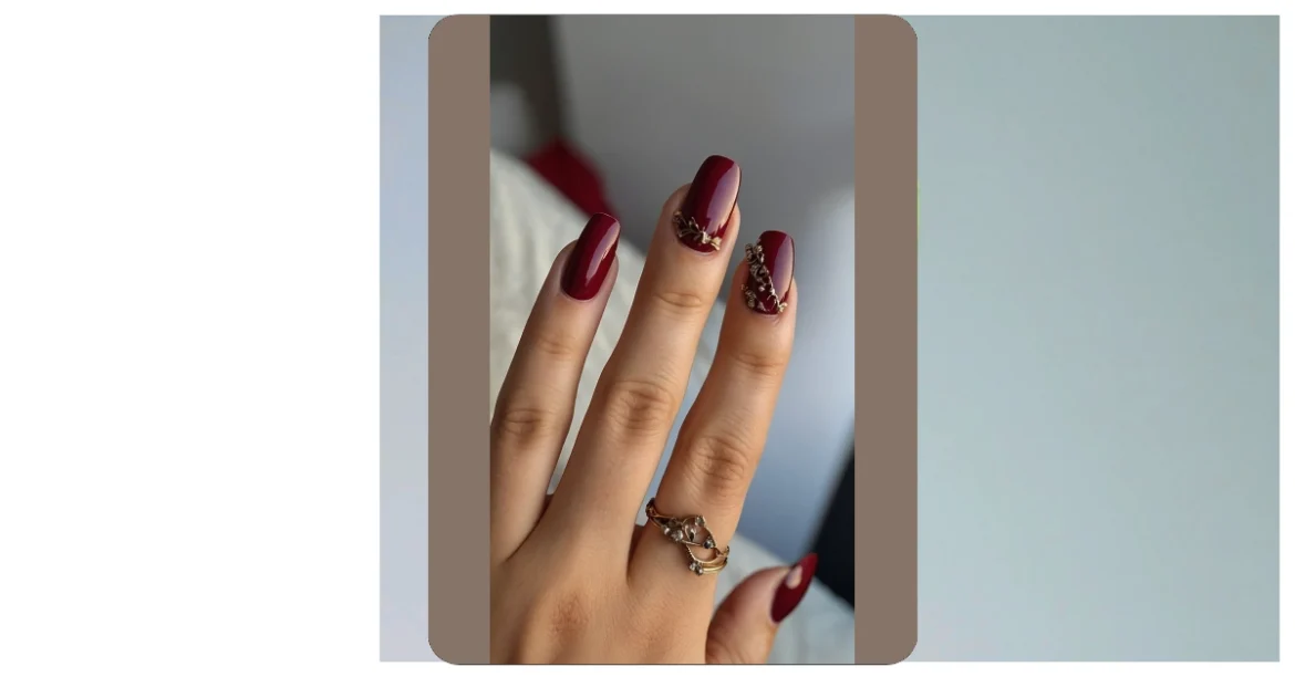 It’s funny how a little bit of bling can completely change the whole look, right? The burgundy itself is already stunning, but with the gold, it’s like, “Wow, this is next level!” It’s like when you add a fancy belt to your outfit, it just elevates the whole look, you know? And these nails are just plain fun to look at! It’s like they’re saying, “Hey, life is too short for boring nails!” Who wouldn’t want to have nails that are this fancy and fun? They’re practically begging for compliments!