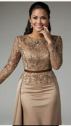 That dress is seriously stunning! Imagine yourself at a wedding, looking absolutely fabulous in this gorgeous rust-colored gown. The intricate detailing is like something out of a fairytale, and the leg slit adds a touch of modern sass – perfect for showing off your killer shoes while still being totally wedding-appropriate. You’ll be the best-dressed guest, hands down! No awkward “what to wear?” stress here.