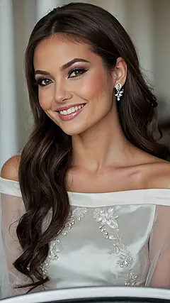 The woman in this picture has got some serious hair game going on! Her long, flowing locks are a total dream. They’re so beautifully styled, with those soft waves and the way they frame her face, it’s like something out of a fairytale. And guess what? That’s exactly how you want to look on your big day! Forget the messy bun – you deserve to feel like a princess, and this hairstyle is perfect for that.