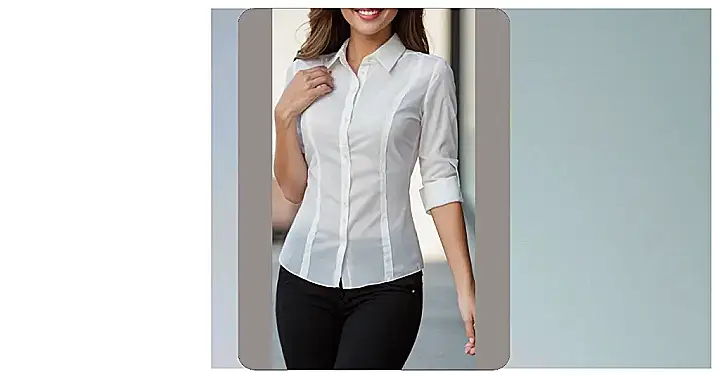 That crisp white blouse? It’s not just for your grandma anymore! This isn’t your average, boring button-up. Check out those sleek lines and the perfect fit – it’s like a stylish hug for your torso. Imagine pairing it with jeans, a skirt, or even some killer slacks (like the ones in the pic!) for a look that’s as effortlessly chic as a cat lounging in a sunbeam. Suddenly, getting ready for school or that party is less of a chore and more of a *fashion show*.