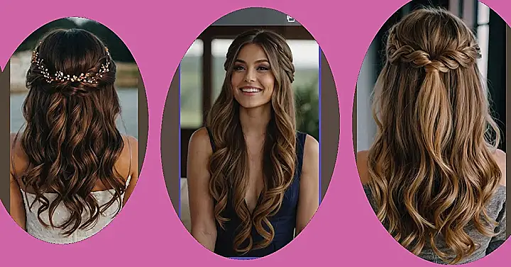This hairstyle is like a fairy tale come to life! It’s got the perfect amount of curls, and that little sparkly headband makes the whole thing look super fancy. It’s like, a princess went to the beach and then to a wedding… and she’s totally rocking it!