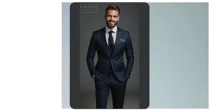 This guy’s got the whole “men’s fashion” thing down! His suit is like a superhero costume for adults – it’s sharp, sleek, and makes him look like he could conquer the world (or at least ace that big presentation). He’s got a cool tie, a snazzy pocket square, and even his smile is sharp!