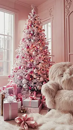 And check out that fuzzy armchair – it looks so incredibly comfy, you’d probably melt into it faster than a snowman in July, especially with all those picture-perfect pink and white presents stacked around the tree. This whole scene screams ‘cozy winter dream’ with a serious fashion twist. It’s totally the kind of vibe you’d want to set as your phone or desktop wallpaper, just to keep those super fun, festive, and undeniably chic Barbiecore holiday spirits sparkling all season. Who needs a white Christmas when you can have a totally pink one?