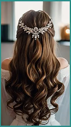 So, your hair is practically Rapunzel-length, and you’re walking down the aisle? Forget boring ponytails! This hairstyle is like the perfect blend of “I woke up like this” chill vibes and “I hired a professional” glamour. Plus, that sparkly headband? It’s like wearing a tiara, but without looking like you’re about to rule a small European country (unless that *is* your plan, then rock on!).