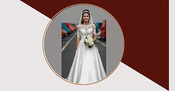 This wedding dress is like something straight out of a fairytale! It has lace, it has sleeves, and a skirt so big you could probably hide a whole pizza in it (for emergency snacking during the ceremony, of course). Imagine twirling in this beauty – you’d definitely feel like a princess, ready to meet her prince (or at least tolerate his embarrassing uncle at the reception).