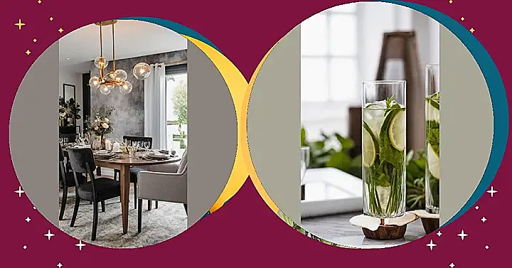 Forget hiring an interior designer or wrestling with weird sculptures for your table. Look at those glasses! They just scream “refreshing” and also “hey, I know how to make things look good without breaking a sweat.” Plunking down some cool drinks with fancy bits like lemon and mint instantly makes your table look like it’s ready for a VIP guest, even if that guest is just you and a plate of questionable leftovers. It’s like the simplest magic trick for your dining space – add something colourful and fresh, and suddenly everything feels a little more put-together and way less…boring.