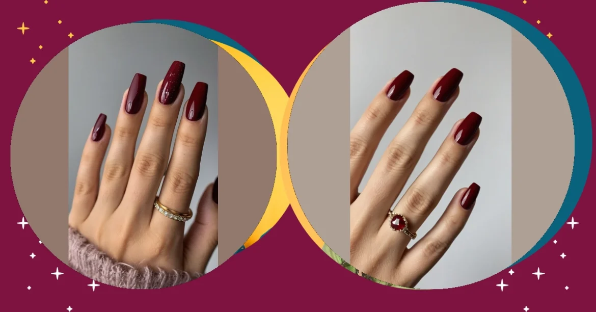 And the best part? You don’t need to be a nail artist to rock this look. A simple burgundy polish and a touch of creativity (or a steady hand and some nail art stickers) and BAM! Instant, classy, and completely Instagram-worthy nails. It’s like adding the perfect accessory to your outfit, except this accessory is attached to your fingers – how cool is that?! Plus, the rings just add the cherry on top!