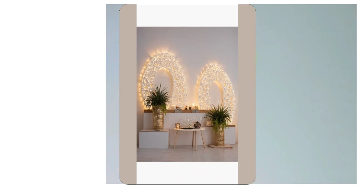 Check out this room that decided to go all out with its decor! Those huge, glowing oval things on the wall? They look like super fancy, oversized art pieces, or maybe even portals to another dimension that just happen to glow perfectly. They’re definitely stealing the show, aren’t they? Instead of just regular old lamps, these artistic light fixtures are basically screaming, “I’m not just decor, I’m a *whole vibe*!” Paired with those shiny gold planters holding spiky green plants, it’s like this room is ready for a red-carpet event, or at least a really chill hangout session with extra good lighting for your selfies.