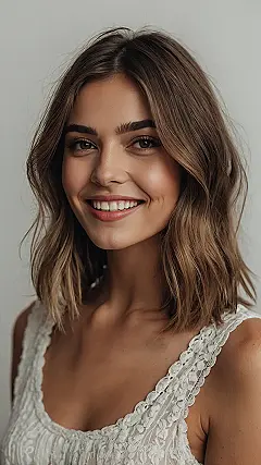And can we talk about that smile? Her radiant expression really pops with this bouncy, shoulder-length cut framing her face so perfectly. It’s got that cool, ‘I woke up like this but actually put in minimal effort’ vibe that everyone secretly wants. This look isn’t just about cutting off some length; it’s about embracing a fresh, confident energy that screams “ready for anything.” So, if you’re daydreaming about a super cute style that won’t take forever to tame, this picture is basically your hair stylist’s new mood board!