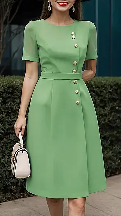 Finding the right ‘social dress’ can feel like searching for a four-leaf clover while blindfolded. You need something that says “I belong here!” but also “I can still totally sneak snacks.” This green number has those shiny buttons that make it look extra special, like it’s ready for birthday parties, family dinners, or maybe even just looking fabulous while you binge-watch shows on the couch (hey, that’s a social event with yourself!). It’s the kind of dress that makes you feel like you can conquer the world, or at least survive awkward small talk.