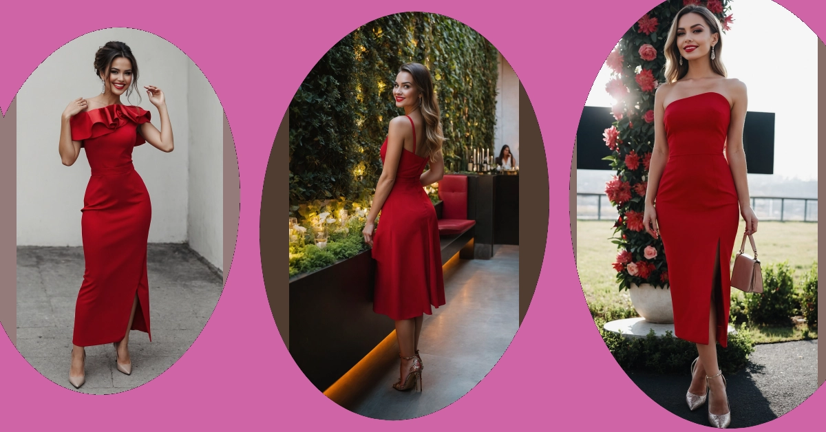 The woman in the picture totally gets it – sometimes “casual” just means you’re so effortlessly cool, you accidentally look like you’re about to walk a red carpet. Dressed in this amazing deep red, almost berry-colored dress, she looks like she just woke up, grabbed a sparkly drink (that also happens to be red!), and decided to casually slay the day. Those flowy waves in her hair and that super bright smile? Pretty sure she’s just proving that even when you’re going for a relaxed vibe, a pop of red can make you feel like the main character of your own awesome movie.