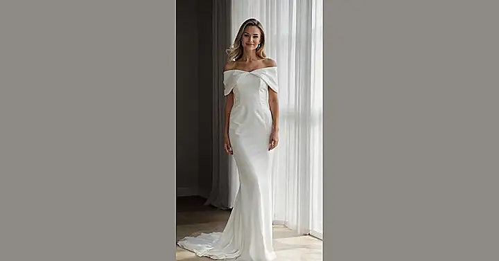 Trying to pick a wedding dress for 2026? Ditch the idea of wrestling with a giant, sparkly marshmallow! This stunning, off-the-shoulder number proves that sleek and simple is making a huge comeback. It’s like the dress took a chill pill and decided to be effortlessly elegant, perfect for showing off your shoulders without any itchy lace drama. You’ll be able to move, dance, and maybe even sneak an extra slice of cake without feeling like you’re trapped in a fortress of fabric, which is totally a win-win for any future bride.