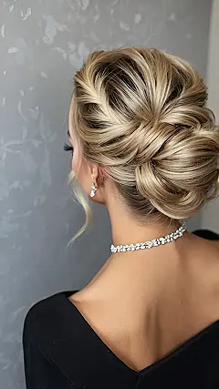Seriously, this updo isn’t just for brides; it’s totally versatile! You could wear this to prom, a fancy dinner, or even just to impress your friends. The style is easily adaptable – your hair could be blonde like this gorgeous model, or any color under the sun. Add some sparkly hair clips or even a flower, and you’ve got a look that’s totally *you*. You could even try slightly different braids or twists to make it your own. So get creative and find your perfect chic updo!