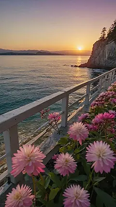 Imagine this: you’re strolling along a beautiful white fence, the salty air kissing your face as the sun dips below the horizon, painting the sky in a million shades of orange and purple. It’s so peaceful, you could almost hear the ocean sighing contentedly. And to make it even better, a whole bunch of fluffy pink flowers are blooming right beside you, like they’re throwing a party just for you! It’s the kind of tranquil scene that makes you want to grab your best friend, share some popcorn, and just *ooh* and *aah* at the beauty.