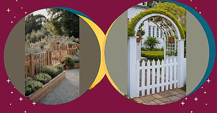 That isn’t just any old gate; it’s practically a red-carpet entrance to a plant party! With its crisp white picket fence, it looks like it’s holding back all the garden secrets, daring you to peek inside. Above it, a beautiful arch is totally showing off, draped in lush green vines like a fancy botanical wig. Those hanging pots are probably just tiny green waiting rooms for the most amazing flowers, ready to pop out and put on a colorful concert. This gate isn’t just an entry; it’s the welcoming committee for a flower garden so vibrant, you half expect the petunias to start salsa dancing.