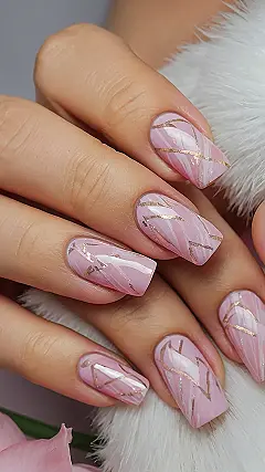 These nails are seriously cute! Imagine showing up to school with these bad boys – everyone would be asking where you got them done. The soft pink is totally dreamy, and those gold stripes? They’re like little pieces of sunshine on your fingertips. It’s the perfect blend of girly and glam, like a princess who secretly loves a bit of sparkle. You’d be ready for anything, from a pop quiz to a school dance, with nails this fab!