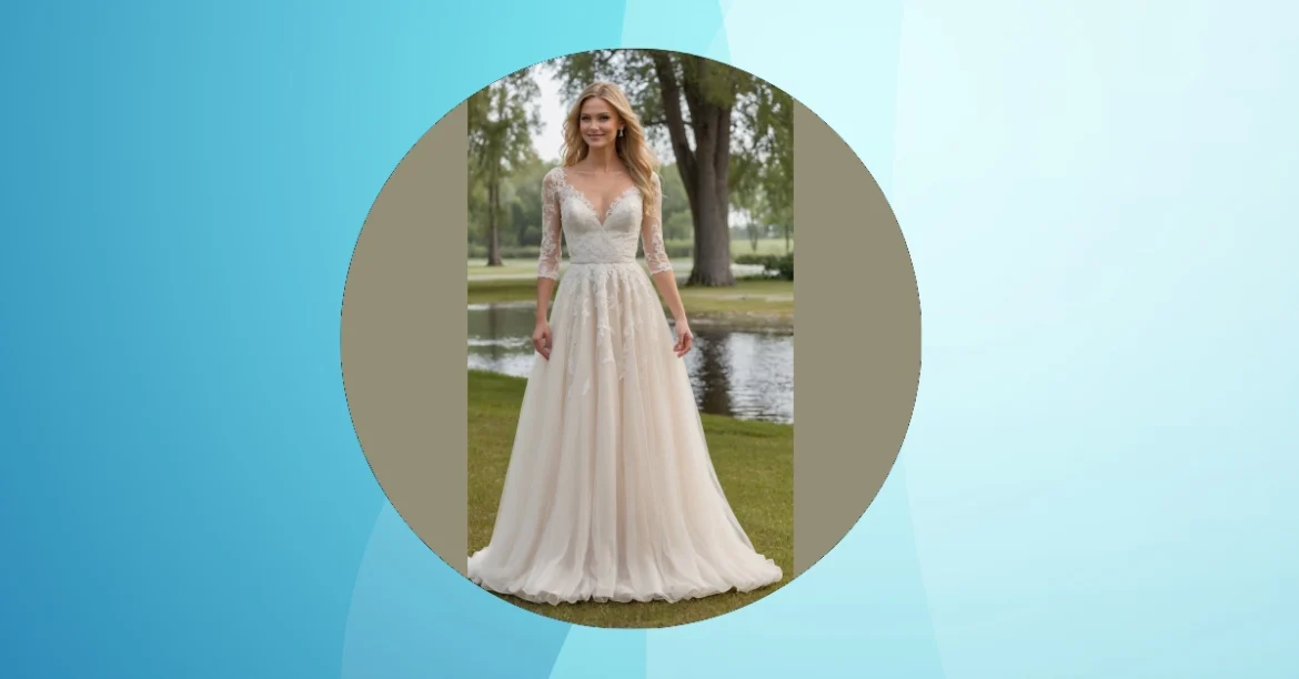 Get ready to bookmark this look, because your future self getting married in 2026 might just be rocking something this fabulous! This dress is seriously giving us major heart eyes with its delicate lace bodice and those perfectly elegant, not-too-long sleeves. It’s the kind of gown that makes you want to twirl around in a field (just like our model!) without accidentally stepping on your own train. Plus, that V-neck is classy without being too much, showing off just enough sparkle from a necklace – or maybe just your radiant smile because you found the perfect dress!