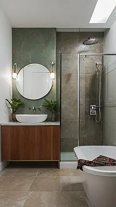 Think of your small bathroom as a design challenge, not a disaster! The key is to maximize space and add personality. The clean lines of the wooden cabinet keep things from feeling cluttered, and that freestanding tub is a luxurious touch that doesn’t overwhelm the room. Who needs a giant bathroom when you can have a small, super-stylish one that’s totally *you*? It’s proof that even a tiny space can pack a serious design punch!