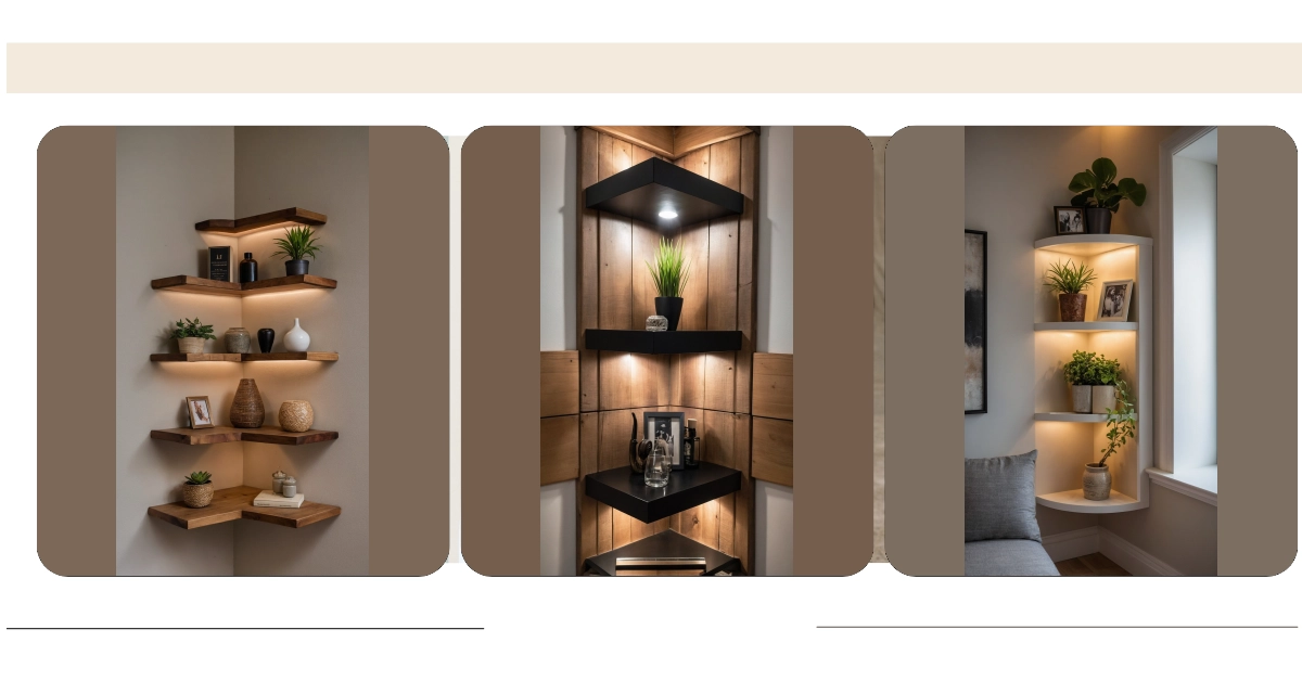 Talk about a glow-up! Each little plant looks super happy soaking in that warm, understated light, almost like they’re saying, “Thanks for the spotlight, boss!” And those framed photos aren’t just sitting there; they’re practically posing for the camera, getting the VIP treatment on these perfectly curved shelves. It’s a friendly reminder that with the right corner shelves, you can transform any dull space into a personal oasis, making even a forgotten corner feel warm, inviting, and surprisingly cool.
