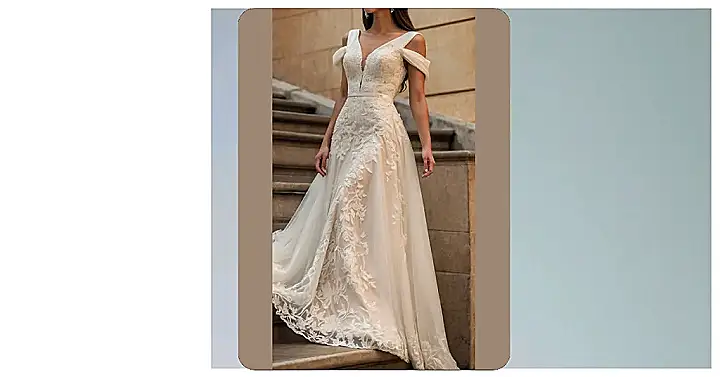 This white bridal dress is like, totally fairytale vibes, right? With the lace details and the flowy skirt, it’s the kind of dress you imagine wearing while a string quartet plays and your future spouse is crying (happy tears, of course!). You could twirl in it for hours, even if you stepped on it a little.