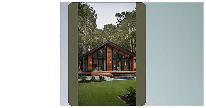 Take a peek at this place! It looks like a super-chic treehouse got a serious upgrade and decided to settle down amongst its leafy friends. With its cool, sloped roof, it’s like the house is subtly winking at you, or maybe it just got too excited about geometry class. All that natural wood siding makes it feel cozy and connected to the huge trees surrounding it, while the sharp black frames give it that ‘I’m effortlessly stylish’ vibe that even your favorite influencer would envy. This isn’t your grandma’s cottage; it’s a modern masterpiece chilling in the wild, probably sipping an iced latte.