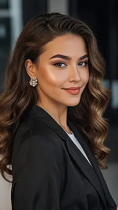 This picture perfectly shows off the ‘side waves’ hairstyle, and let’s be real, it makes anyone look effortlessly cool. It’s like your hair just decided to have a good day and brought its A-game, flowing down one shoulder with those perfect, bouncy curls. Forget about battling frizz or trying to make both sides of your head look exactly equal; with this style, one side is just chillin’, letting the other side do all the work and soak up the compliments. It’s the ultimate “I woke up like this… after spending an hour with a curling iron” look.